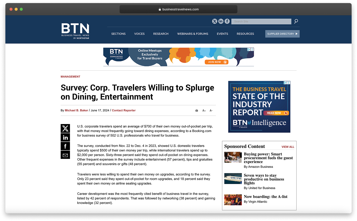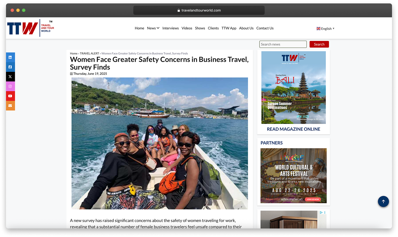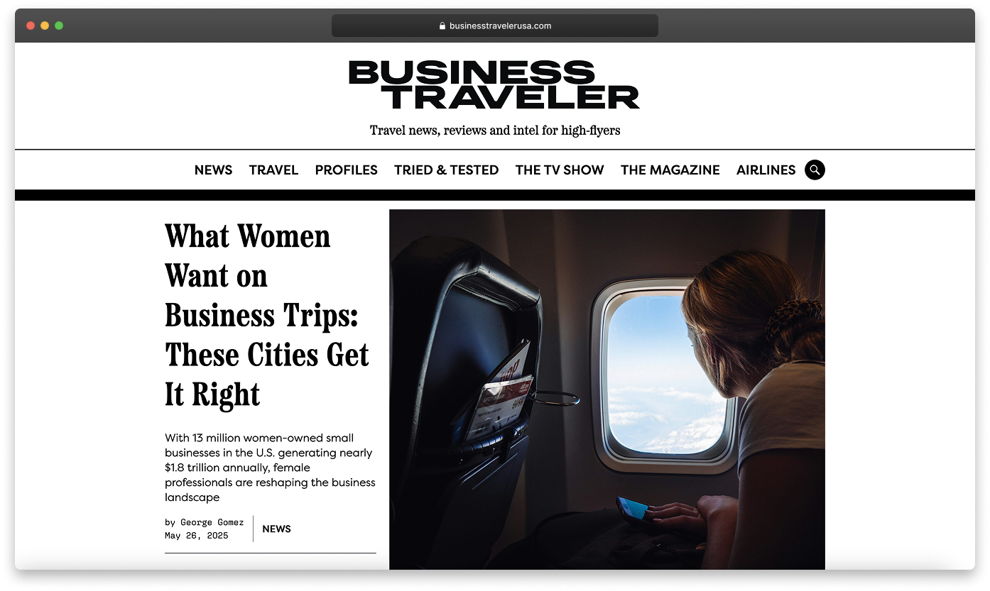 In the US, around 45% of business travellers are female, which created a hook for some of our proactive work. We shared advice on how female travellers can keep safe while on a business trip, as well as utilising survey data to create a business travel trends piece.