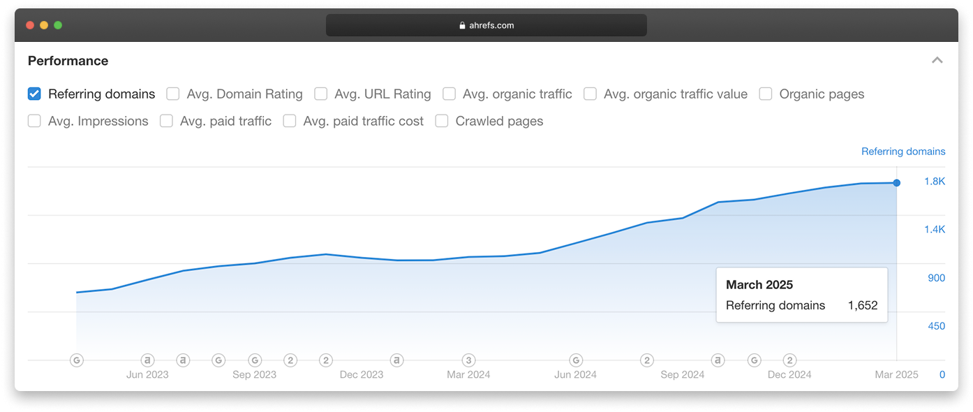 links earned from 72 referring domains.