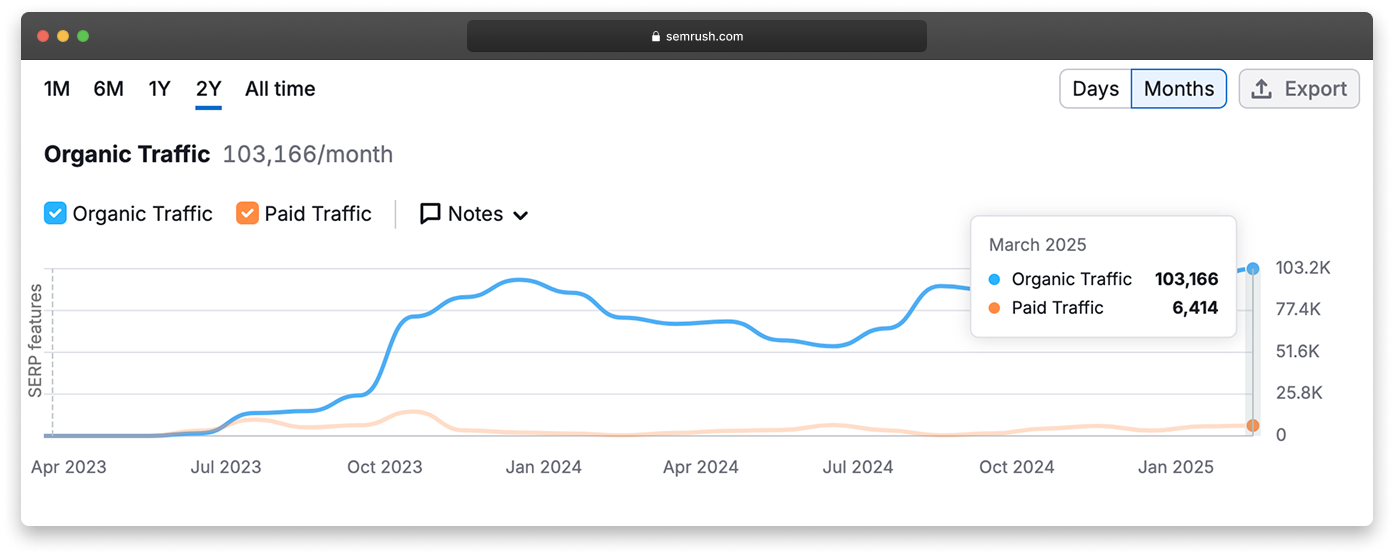 Organic traffic has now surpassed the pre-migration period and continues to grow month-on-month, putting the site in a strong position to enter 2024 with a mission to accelerate the brand’s visibility and overall market share.
