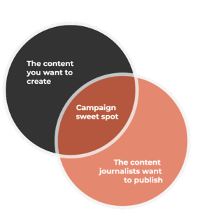 This is all about coming up with campaign concepts that balance the content you want to create as a brand (promotional content, for example) with the content that journalists want to publish (content their audience wants to consume).