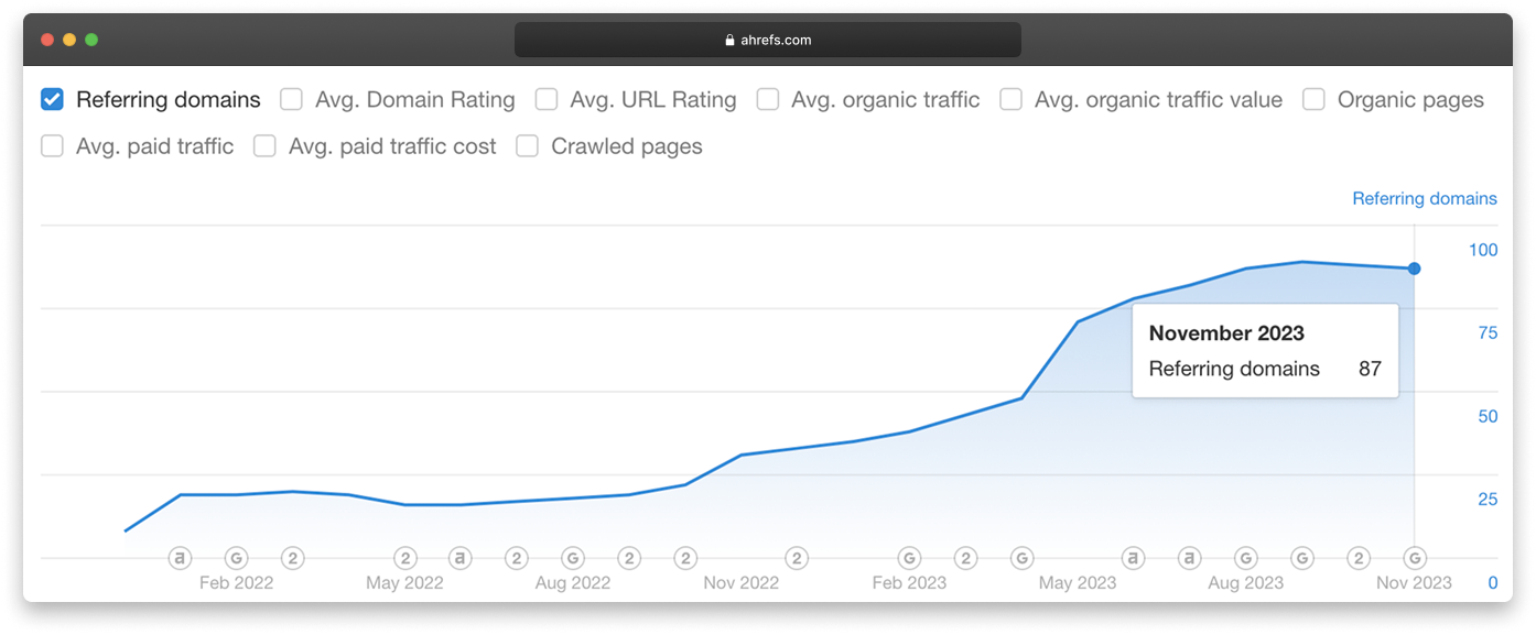 links earned from 86 referring domains.